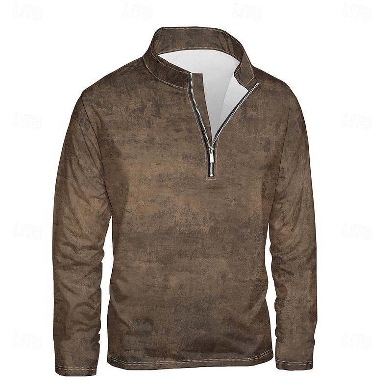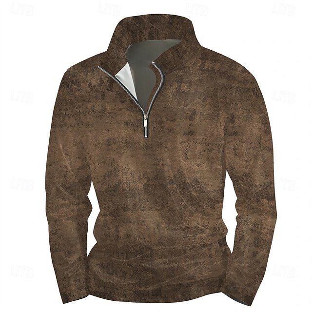 More information about Men's Solid / Plain Color Hoodies Daily Casual Long Sleeve Stand Collar Vacation Going out Streetwear Brown Print Spring & Fall Designer