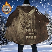 More information about Men's Lion Letter Graphic Prints Winter Coat Fleece Jacket Coat Warm Comfortable Breathable Fashion Streetwear Sport Sports & Outdoor Daily Wear Going out Zipper Pocket Print Fall & Winter Hoodie
