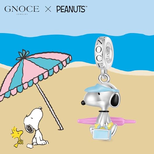 HOT ! GNOCE Summer Beach Bum Peanuts Snoopy Pendant Dangle Charm Bracelet for Women, S925 Sterling Silver Dangle Charms for Women Wife, Valentine‘s Day, Mother’s Day Jewelry