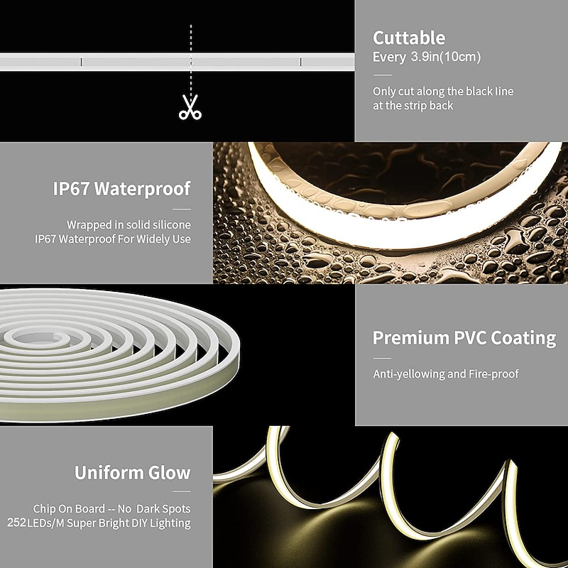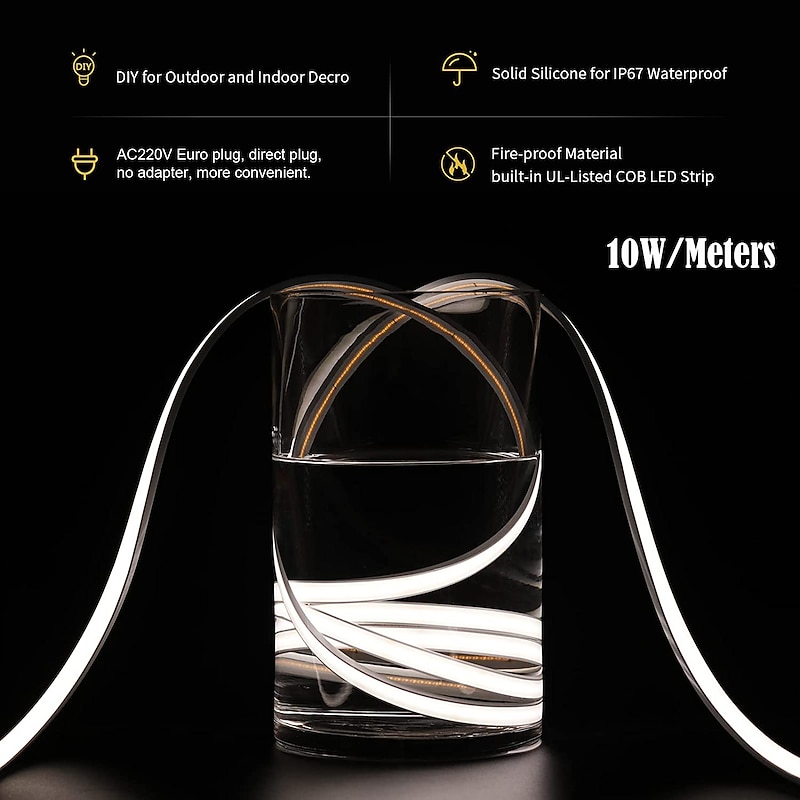 $21.99 - 2M-30M COB LED Strip Light Plug in Flexible 220V Waterproof IP67 High Voltage Led Strip Multiple Colors 240LEDs/M Waterproof Led Light Strips for Bedroom Living Room Kitchen Furniture 2025. Shop for cheap Neon LED Lights online? Buy at lightinthebox.com on sale today!