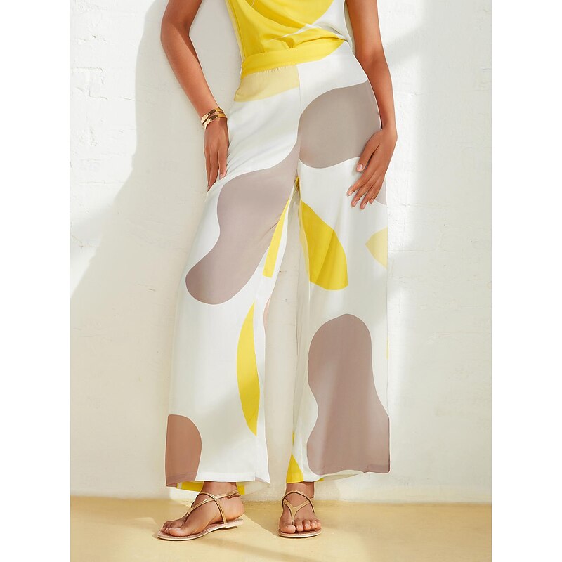 Women's Straight Full Length Satin Pocket Micro-elastic Pants Casual Daily Weekend White Summer S M L 1