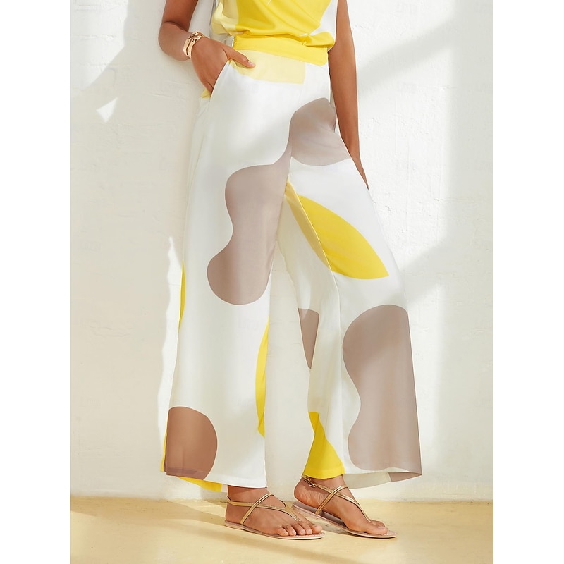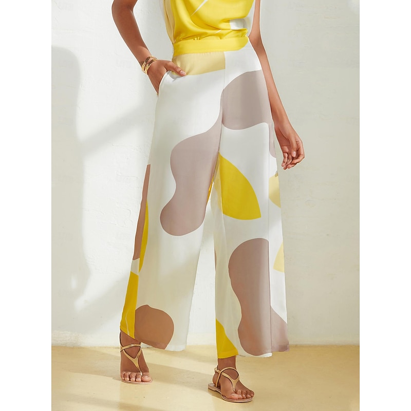Women's Straight Full Length Satin Pocket Micro-elastic Pants Casual Daily Weekend White Summer S M L 2