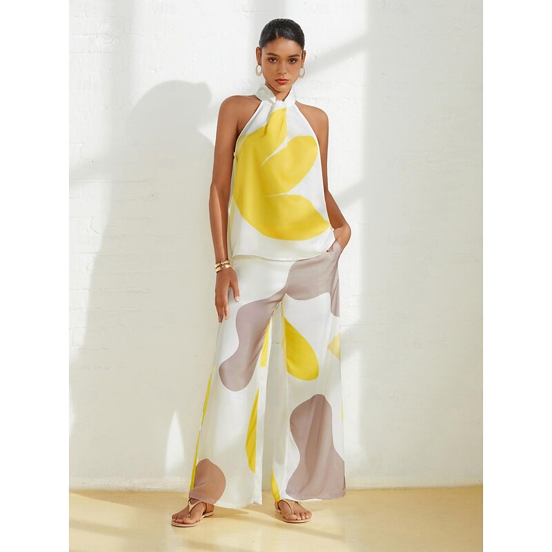 More information about Women's Straight Full Length Satin Pocket Micro-elastic Pants Casual Daily Weekend White Summer S M L