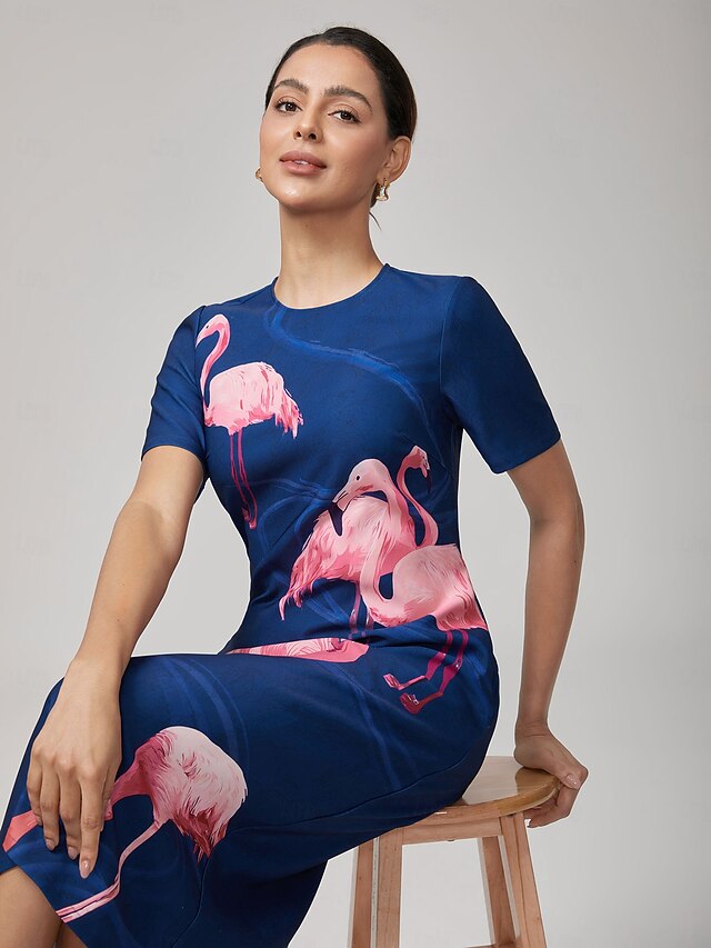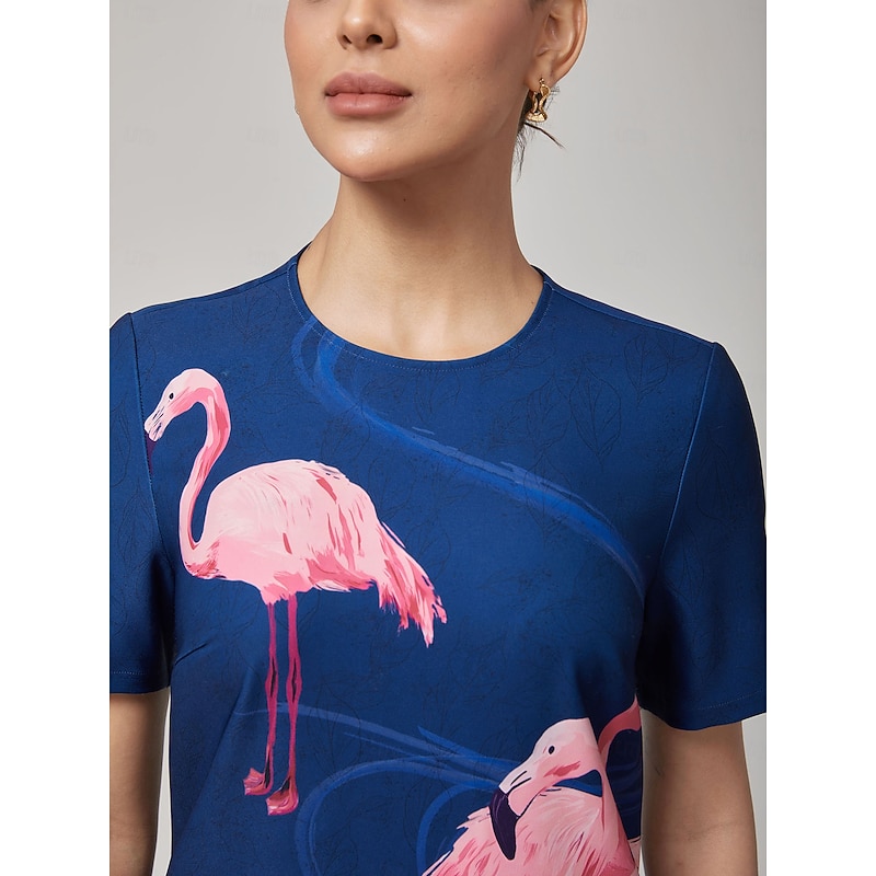 Women's Casual Dress Royal Blue Short Sleeve Flamingo Summer Crew Neck Vacation XS S M 7