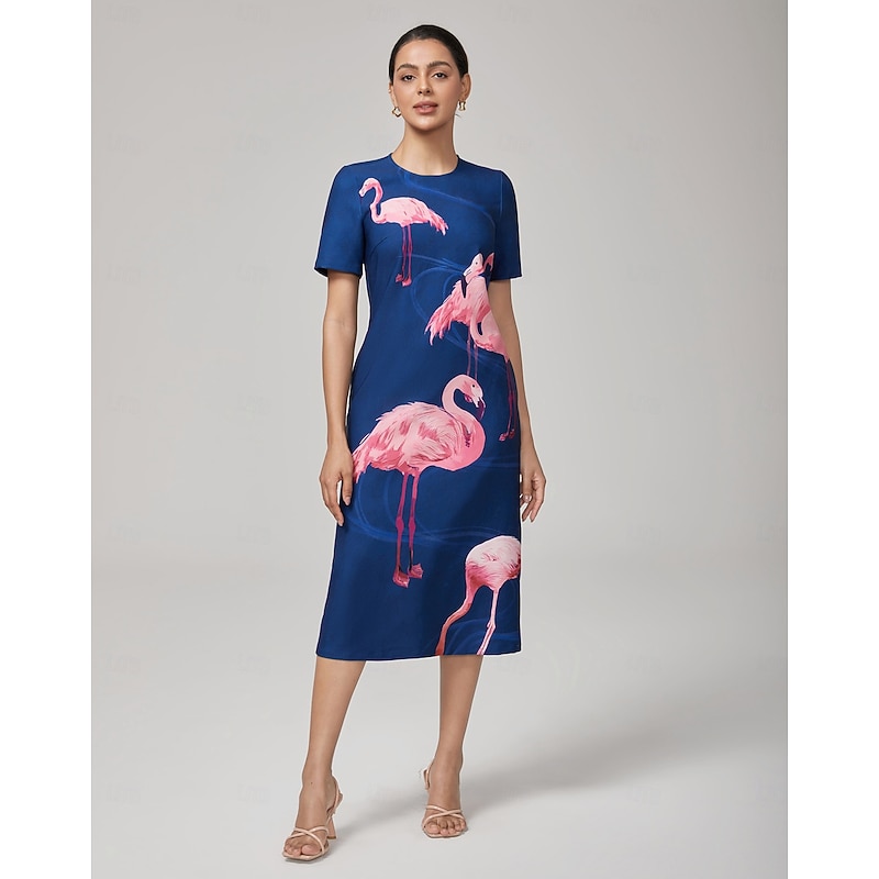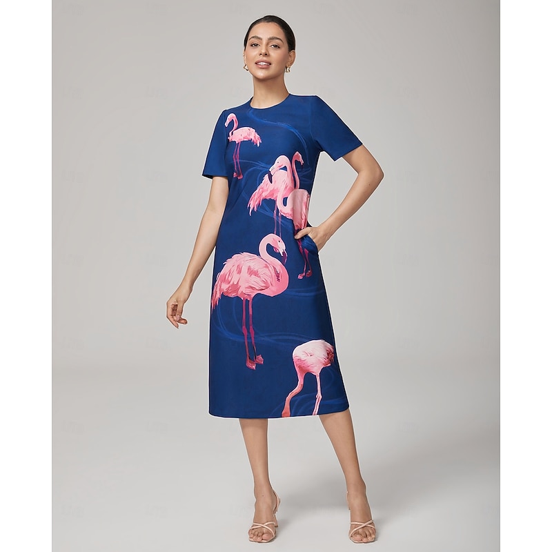 Women's Casual Dress Royal Blue Short Sleeve Flamingo Summer Crew Neck Vacation XS S M 1