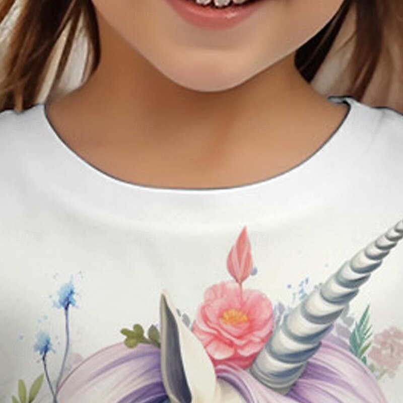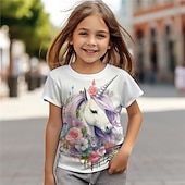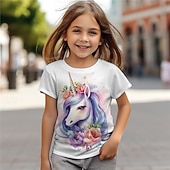 More information about Girls' 3D Unicorn Tee Shirts Pink Short Sleeve 3D Print Summer Active Fashion Cute Polyester Kids 3-12 Years Crew Neck Outdoor Casual Daily Regular Fit