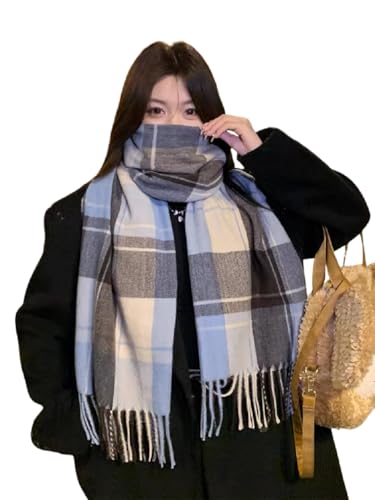 • SOFT MATERIAL:This womens plaid tassel scarf is made of high quality Polyester material, soft and cozy, and good hand feel like cashmere scarf.This Pashmina scarf is perfect for a chilly outdoor night in fall and winter