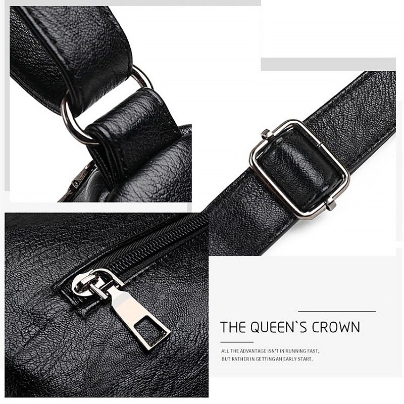 Women's Black Faux Leather Shoulder Bag – Multi-Pocket Crossbody Handbag for Work, Travel, and Daily Use 12