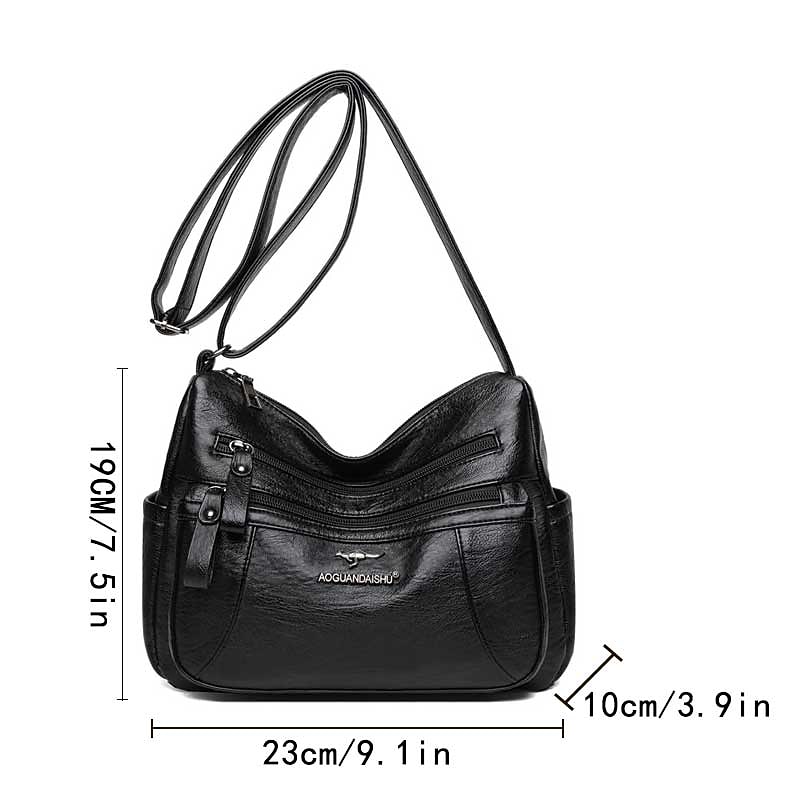 HOT ! Women's Black Faux Leather Shoulder Bag – Multi-Pocket Crossbody Handbag for Work, Travel, and Daily Use