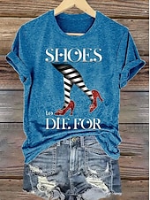 More information about Halloween Women's T shirt Witch Graphic Vintage Stylish Classic Short Sleeve Crew Neck Round Neck Regular Tops Daily Weekend Print Black White Blue Orange Green Summer Fall