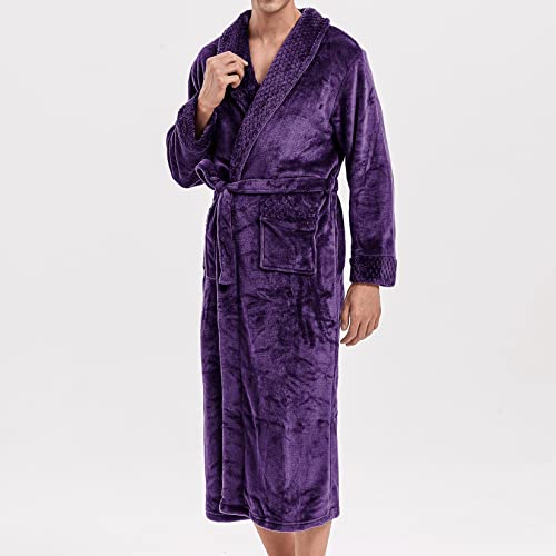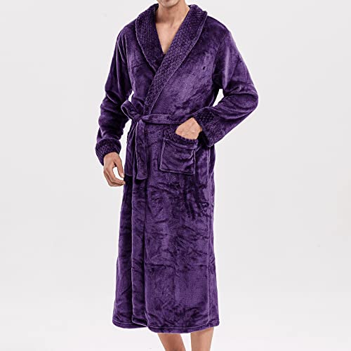 HOT ! Lu's Chic Men's Flannel Robe Fuzzy Sherpa Fleece Bathrobe Fluffy Bath Plush Thick Warm Full Length