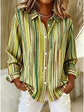 More information about Women's Shirt Blouse Graphic Geometric Striped Casual Long Sleeve Shirt Collar Regular Tops Daily Patchwork Buttons Print Blue Orange Green Spring Fall Winter