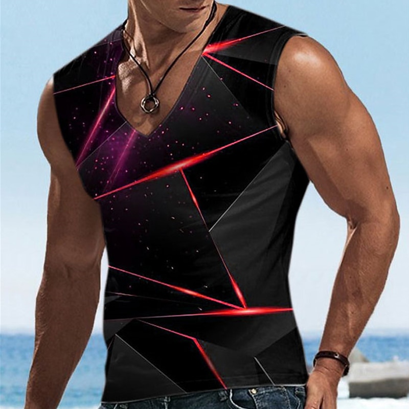 More information about Men's Graphic Geometric Vest Top Sleeveless T shirt 3D Print V Neck Shirt Designer Casual Comfortable Vacation Daily Going out Yellow Blue Red Spring & Summer Clothing Apparel S M L XL 2XL 3XL