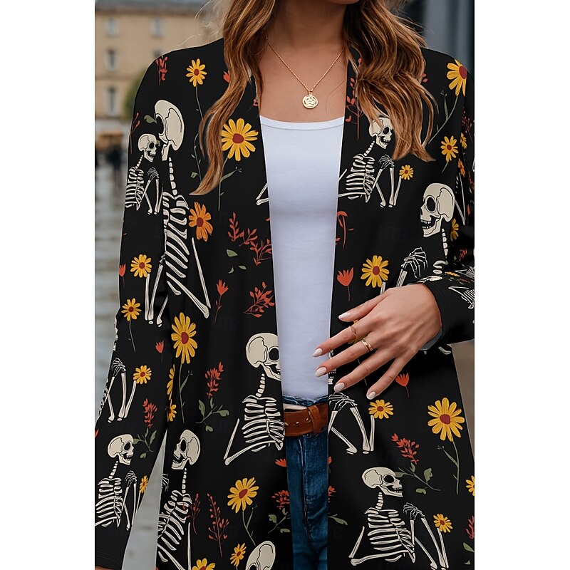 More information about Halloween Women's Coat Lightweight Comfortable Pumpkin Print Vintage Artistic Casual Pumpkin Casual Long Collarless Loose Fit Long Sleeve Outerwear Black Pink Navy Blue Spring Fall