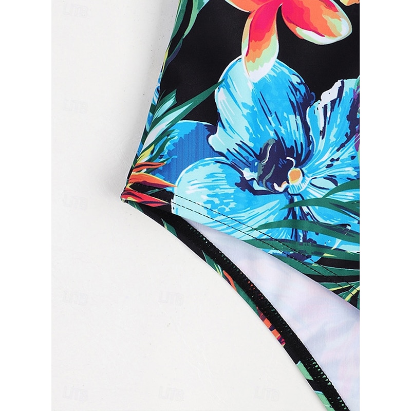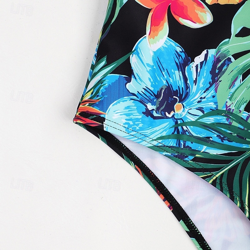 More information about Women's Swimwear One Piece Swimsuit Zipper Backless Vacation Tropical Floral Graphic Halter Neck Sleeveless Bathing Suits