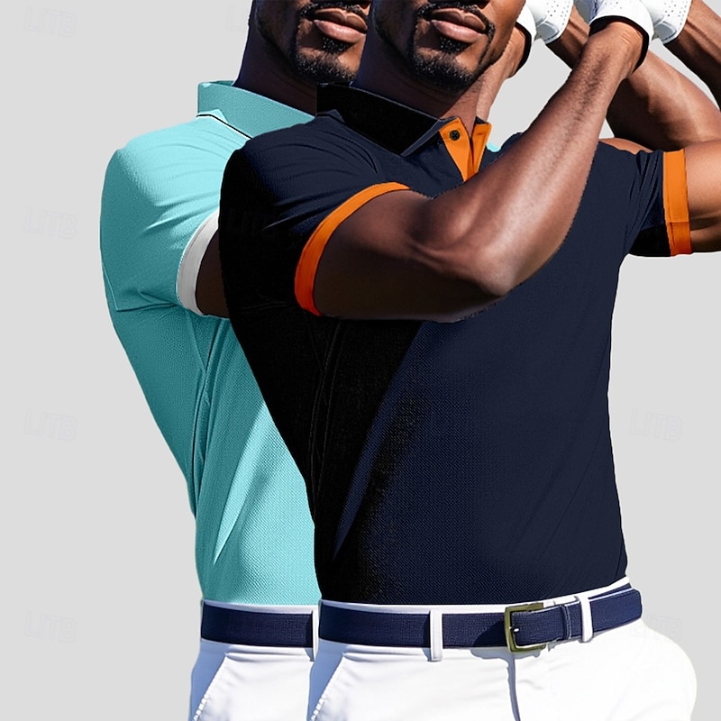 Men's Polo Casual Sports Turndown Short Sleeve Sports Leisure Plain Multi-pack Button Front Summer Navy + white Navy + Navy Navy + Black Navy + yellow Navy blue + milk green Polo 14