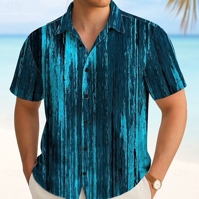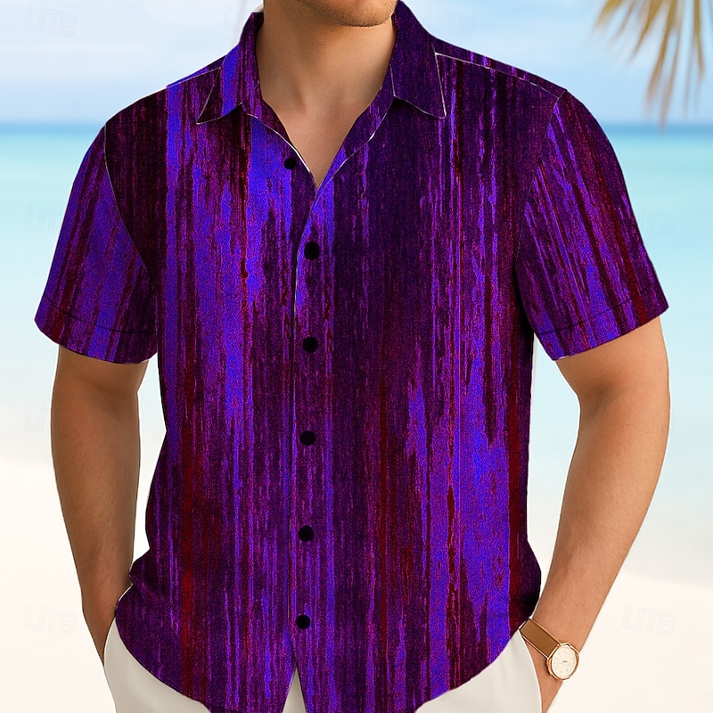 More information about Men's Gradient Line Shirt Summer Shirt Button Up Shirt Short Sleeve Fashion Casual Outdoor Vacation Dailywear Summer Spring Turndown 3D Print Collared Shirts Wine Blue Purple Green