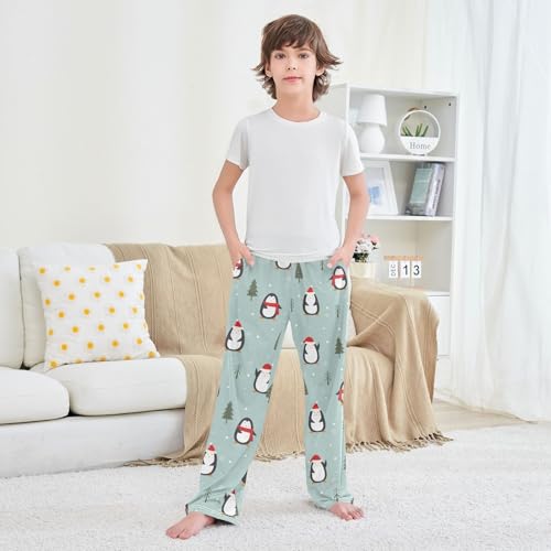 Boys' Pants Cute Penguin Christmas Pine Tree Long Bottoms Jogger Pants Elastic Waist Trousers with Pockets S-XL 4