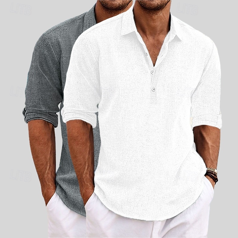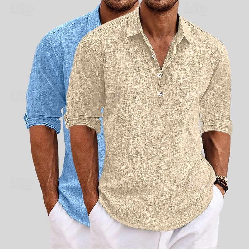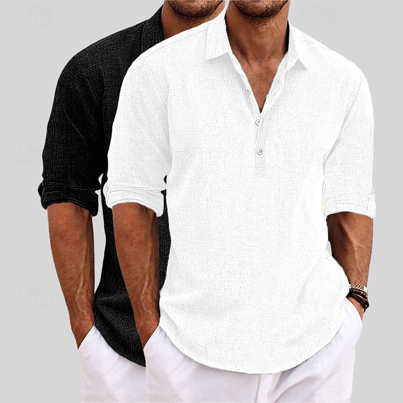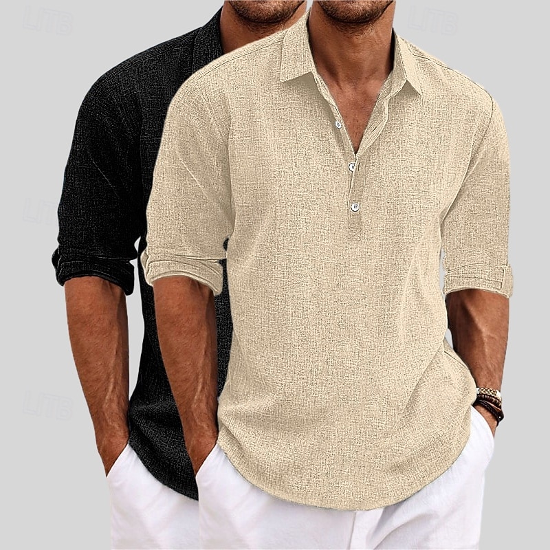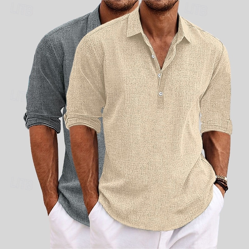 HOT ! Men's Shirt Linen Shirt Summer Shirt Beach Wear Plain Vacation Casual Khaki+Black Blue+Khaki Gray+Khaki White+Black Long Sleeve Lapel Summer Spring Clothing Apparel