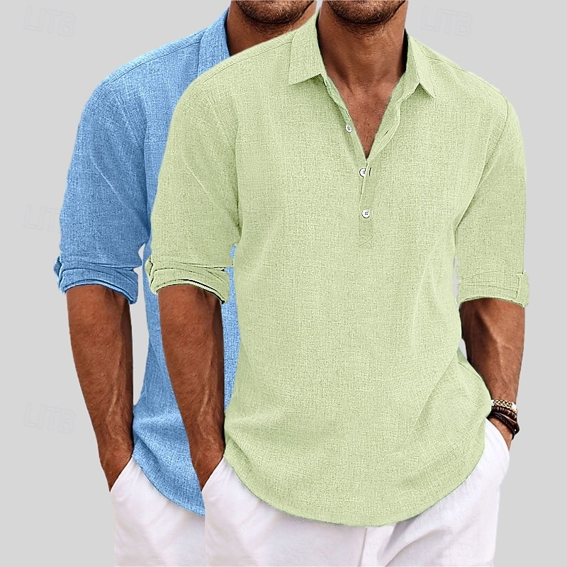 More information about Men's Shirt Linen Shirt Summer Shirt Beach Wear Plain Vacation Casual Khaki+Black Blue+Khaki Gray+Khaki White+Black Long Sleeve Lapel Summer Spring Clothing Apparel