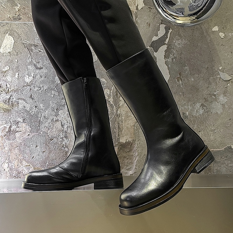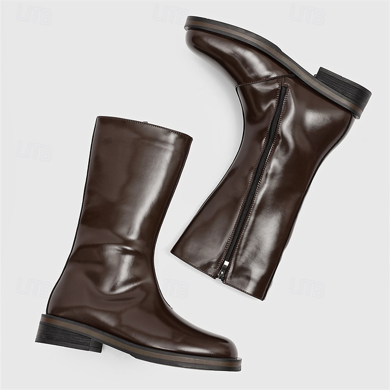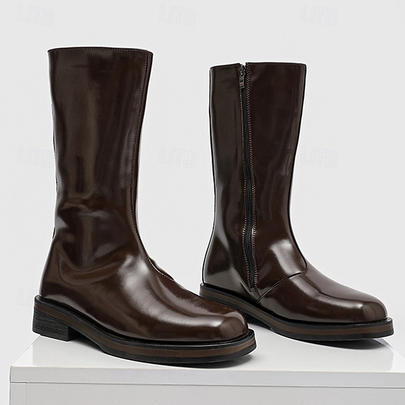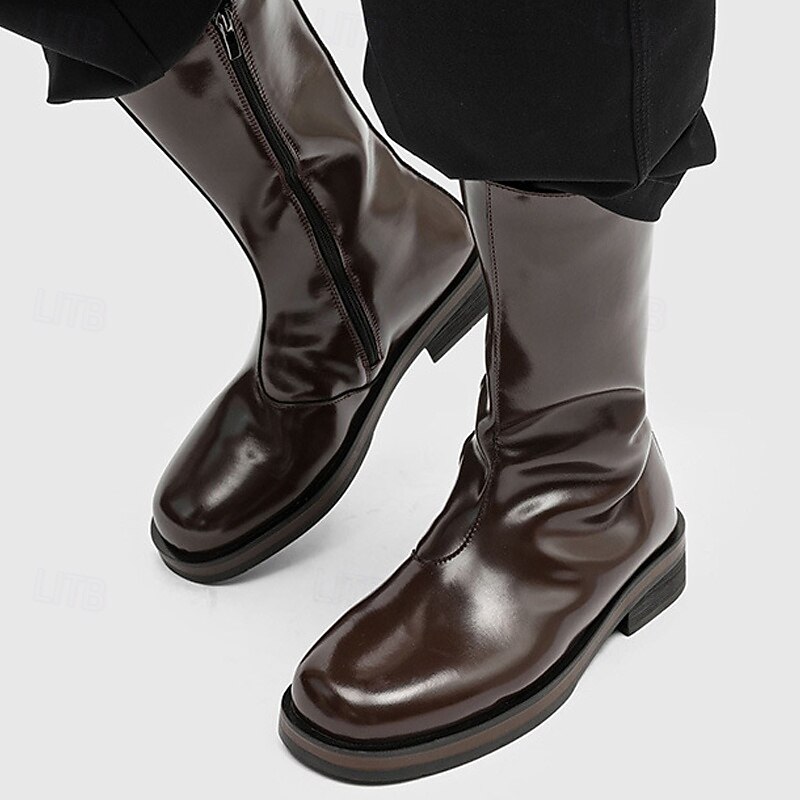 Men's Brown Faux Leather Mid-Calf Boots – Sleek Zipper Design, Classic Retro Style, Comfortable Fit for Business, Formal Events and Casual Wear 1