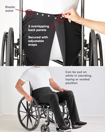 • EASY ACCESS DRESSING: This is adaptive clothing seniors love, especially those with special needs or limited mobility. The adjustable dome closure makes self-dressing from the seated position easier than ever. These adaptive pants for disabled men also feature a stretchy elastic waist for a simple process, even if assisted dressing is required.