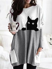 More information about Women's T Shirt Graphic Animal Vintage Fashion Stylish Long Sleeve Crew Neck Long Tops Daily Going out Weekend Pocket Print Blue Dark Gray Beige Gray Spring Fall