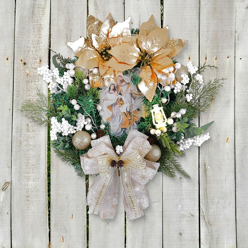 $34.99 - Christmas Wreath for Front Door Nativity Indoor & Outdoor Decoration, LED Gold Lantern Wreath, Illuminated Christian Holiday Flower Garland for Window, Wall, Door Display 2025. Shop for cheap Wreaths, Garlands & Swags online? Buy at lightinthebox.com on sale today!