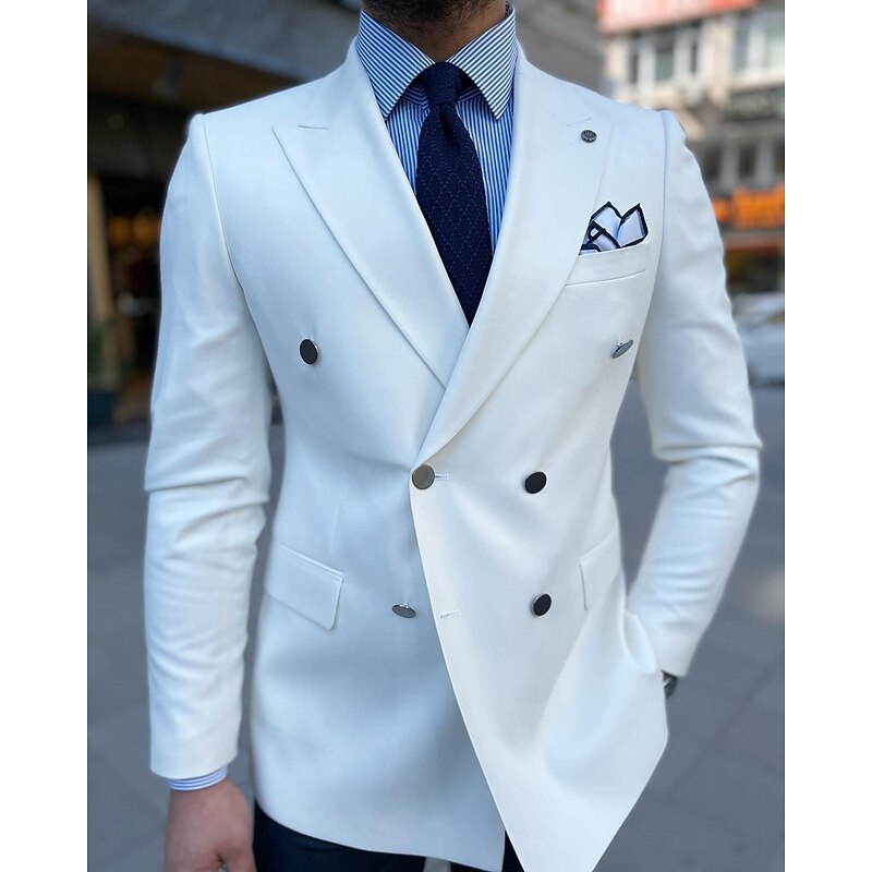 More information about Men's Blazer Jacket Sport Coat Closure collar Casual Office Solid Colored ArmyGreen White Navy Blue Tailored Fit Double Breasted Six-buttons