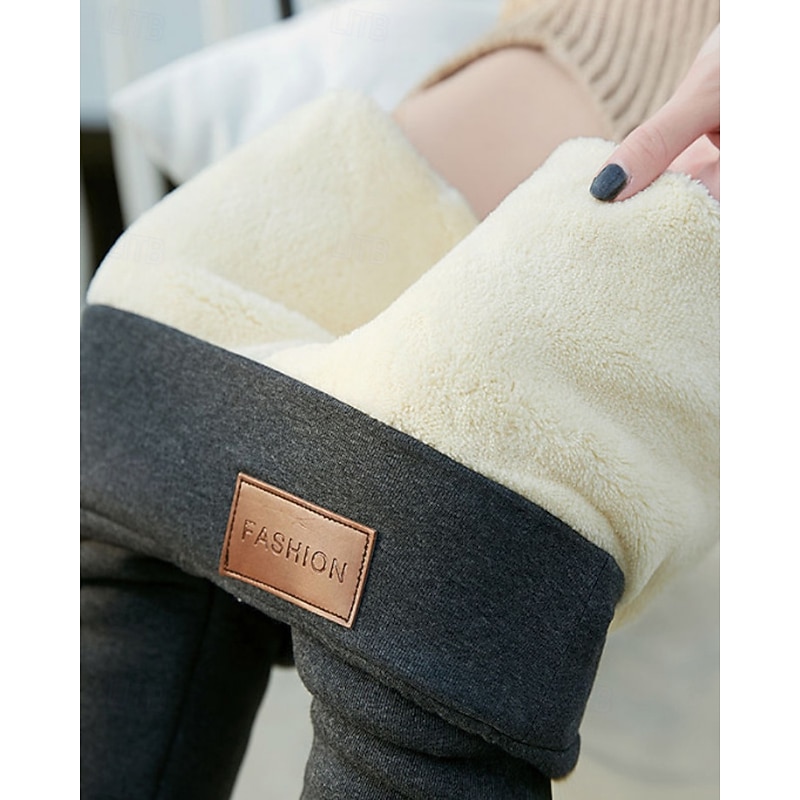 More information about Women's Slacks Leggings Cozy Fleece Lined Streetwear Casual Full Length Natural Plain Elastic Waist Comfortable Street Holiday Daily Wear claret Dark-Gray Grey Black 1# Winter Regular Fit