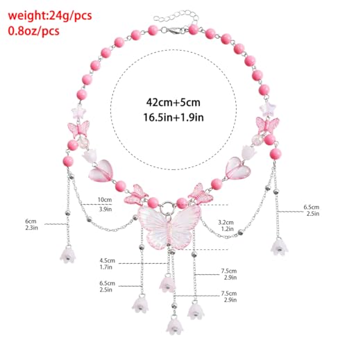 Layered Pearl Butterfly Choker Necklaces for Women,Vintage Crystal Beaded Pendant Necklace Y2K Bow Heart Tassel Chain Necklace Jewelry 5
