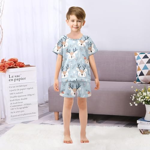 ALAZA Deer Cute Leaves Pajamas Set Short Sleeve Cotton Sleepwear Summer Pjs 2 Piece 5-14Y 6