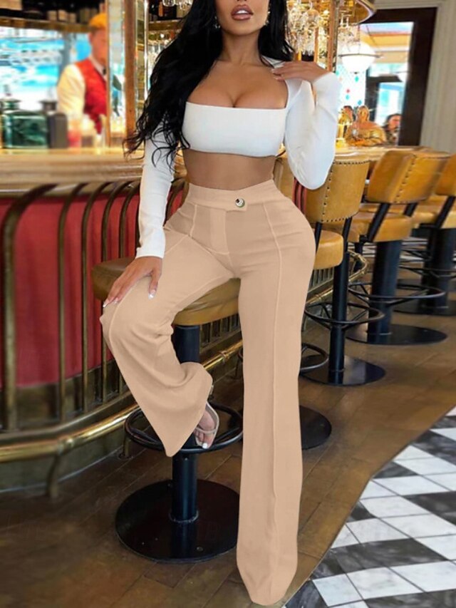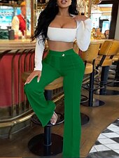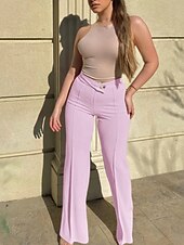 More information about Women's Wide Leg Slacks Streetwear Casual Full Length Natural Plain Elastic Waist Soft Street Holiday Daily Wear Maroon Black Light Purple Green Fall Winter Regular Fit