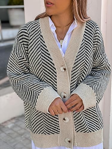 More information about ZAFUL Women's Striped Cardigan Long Sleeve Button Up Open Front Knit Oversized Sweater