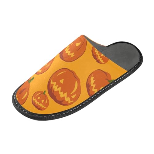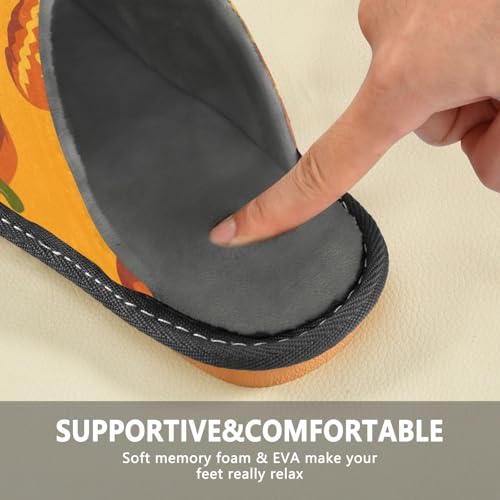 HOT ! JUNZAN Halloween Pumpkins Memory Foam Slippers for Women Men House Slippers for Bedroom Indoor Orange