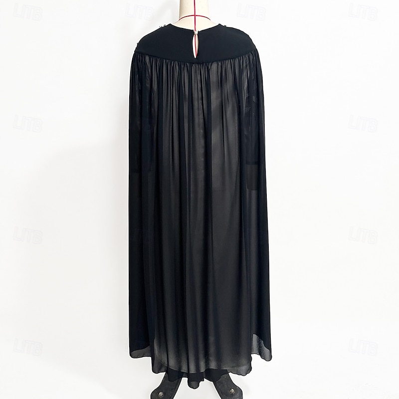 More information about Cape Dress A-Line Mother of the Bride Dress Elegant Crew Neck Crystals Floor Length Long Sleeve with Embroidery Lace