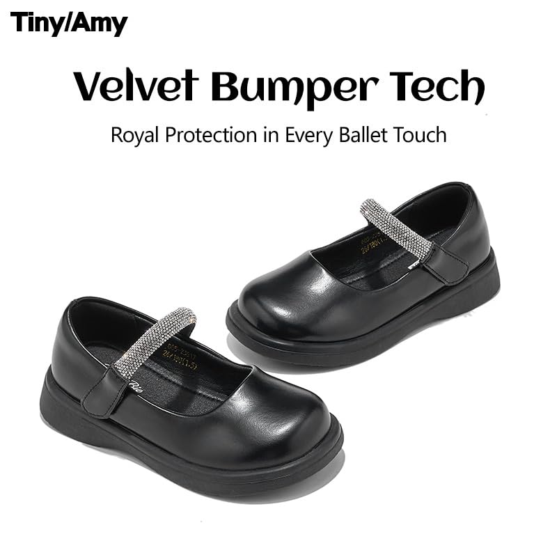 • Elegant Design with Sparkle Details:These girls Mary Jane shoes feature a dazzling rhinestone strap and sleek black finish – perfect for special occasions or dressing up school uniforms.