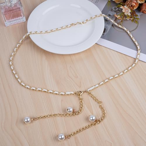 • Design: Gold belt, plus 4 white pearl pendants, wearing white PU velvet in the middle, gentle elegant fashion.