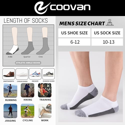 More information about COOVAN Men Athletic Ankle Socks 12 pack Low Cut Short Cushion Casual Sock(12 pairs)