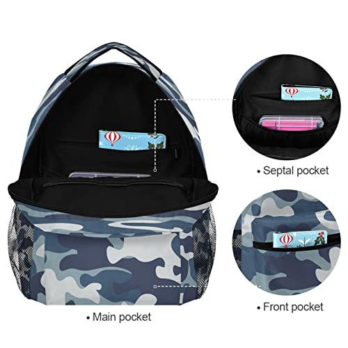 Classic Camouflage Kids Backpack for Boys Girls,Blue Camo Army 16 Inch School Backpack for Elementary Preschool Kindergarten Bookbags for Teens Children Women Men College Travel Bag 2