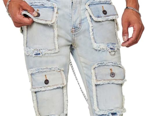 Men's Slim Fit Stretch Jeans Street Hip-Hop Leggings Pants with Multi Pockets Casual Trousers 4