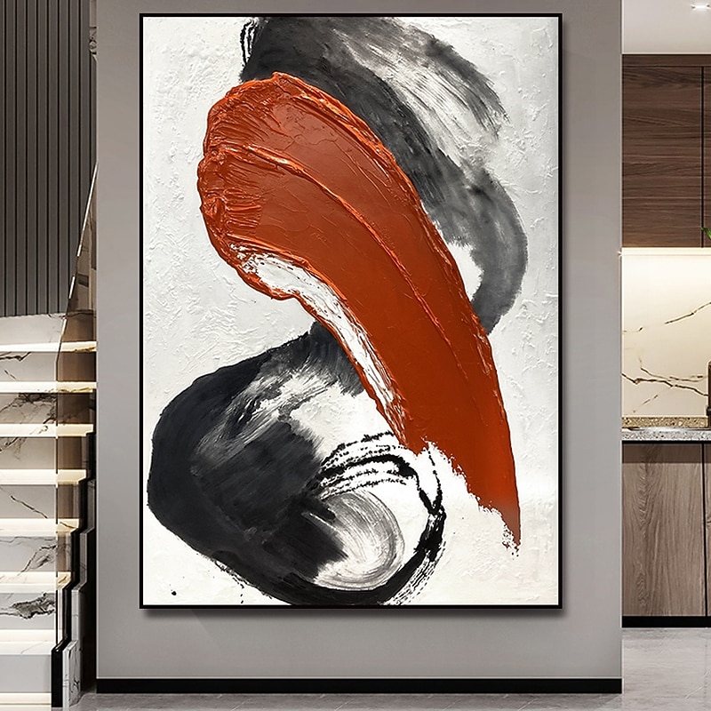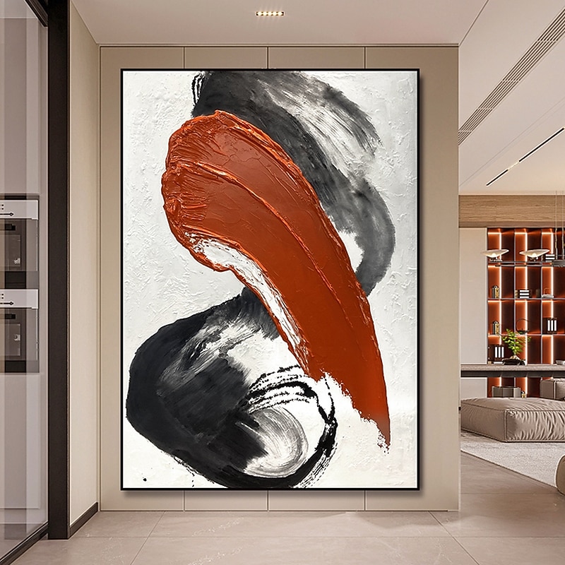 Handmade Hand Painted Oil Painting Wall Modern Abstract White Red Canvas Painting Home Decoration Decor Rolled Canvas No Frame Unstretched 1