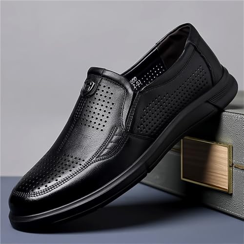 Men's Genuine Leather Dress Shoes Breathable Perforated Soft Sole Business Casual Wedding Groom Shoes Summer Formal Black 7