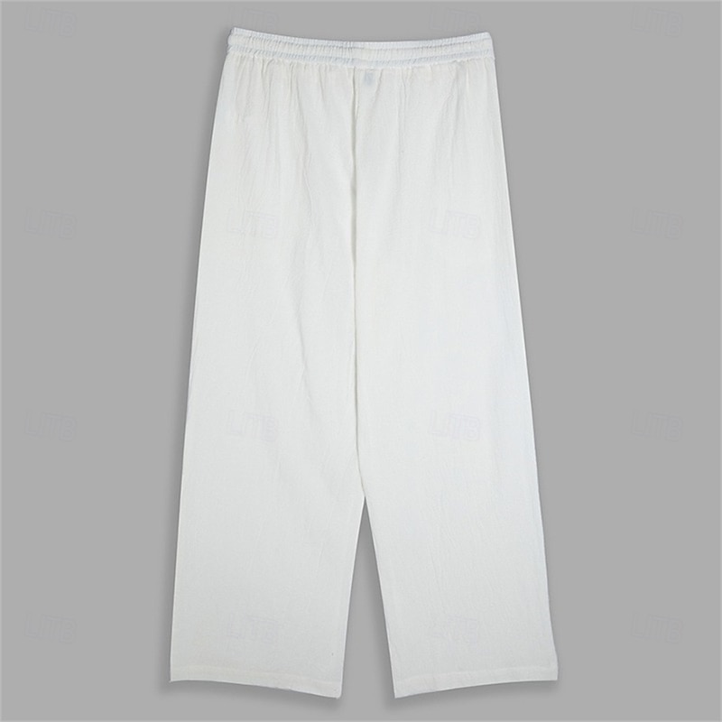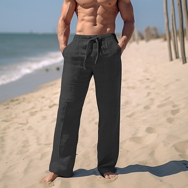 More information about Men's Trousers Summer Pants Beach Pants Drawstring Elastic Waist Straight Leg Plain Comfort Breathable Casual Daily Holiday Fashion Classic Style Black White