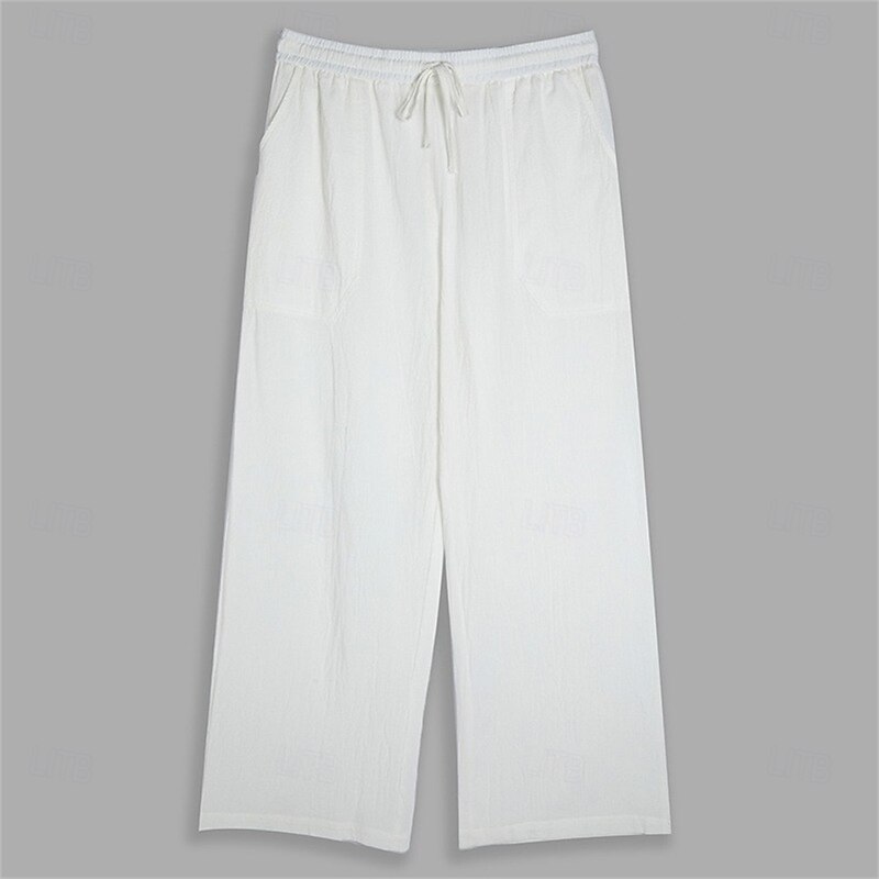 Men's Trousers Summer Pants Beach Pants Drawstring Elastic Waist Straight Leg Plain Comfort Breathable Casual Daily Holiday Fashion Classic Style Black White 11