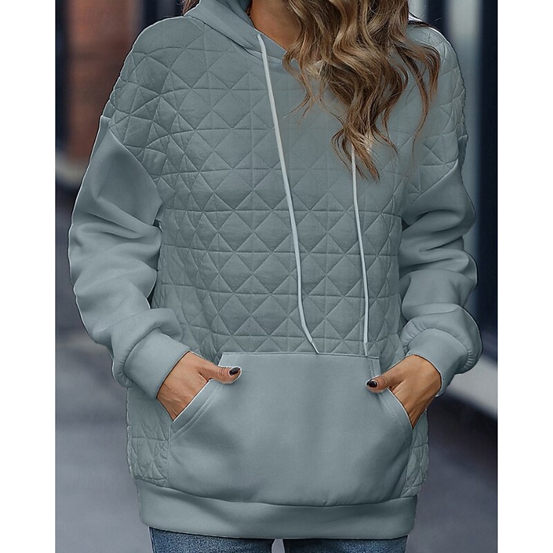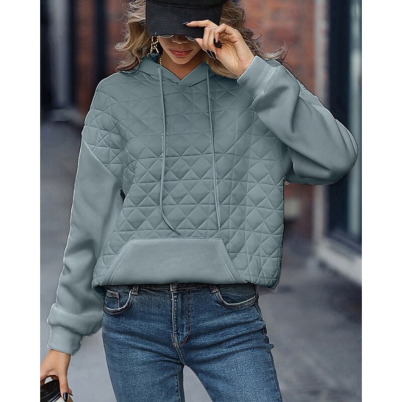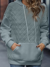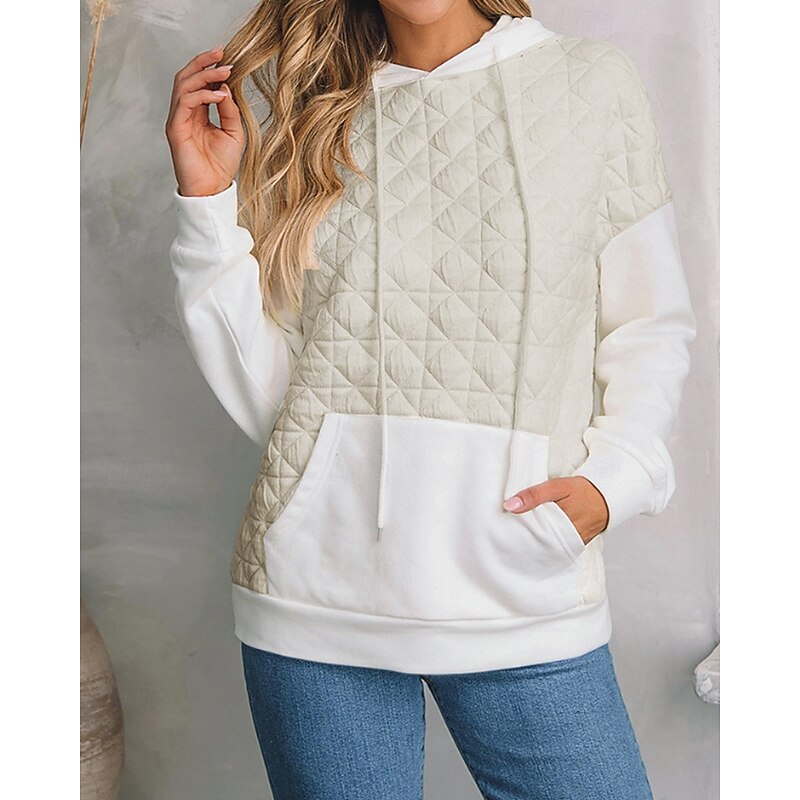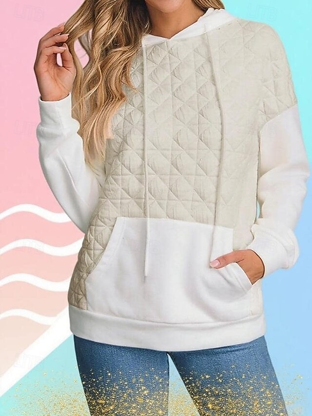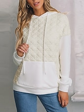 More information about Women's Texture Sweatshirt Waffle Sweatshirt Pullover Hoodie Sweatshirt Color Block Streetwear Casual Long Sleeve Hooded Regular Tops Street Holiday Going out Pocket White Light Green Winter