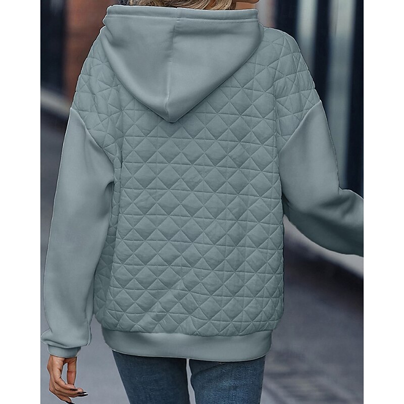 Women's Texture Sweatshirt Waffle Sweatshirt  Pullover Hoodie Sweatshirt Color Block Streetwear Casual Long Sleeve Hooded Regular Tops Street Holiday Going out Pocket White Light Green Winter 10