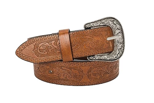Adjustable Vintage Western-Belts for Women Men Engraved Buckle-Belts Cowboy-Cowgirl-Belt (Waist for 29"-39") 5