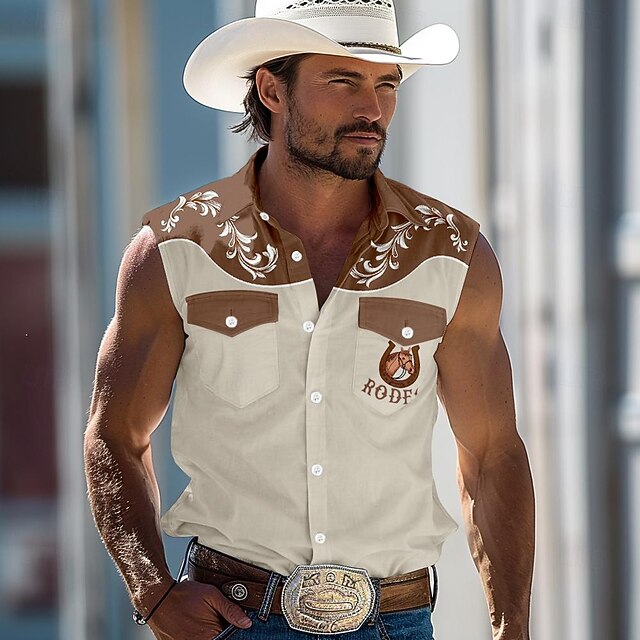 More information about Men's Horse Southwestern Print Shirt Western Shirt Cowboy Shirt Sleeveless Western Style Outdoor Work Causal Summer Spring Shirt Collar Blue Green Khaki