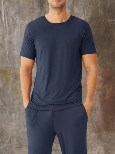 Latuza Men's Viscose Crew Neck Short Sleeves Pajama Sleep Shirt 7